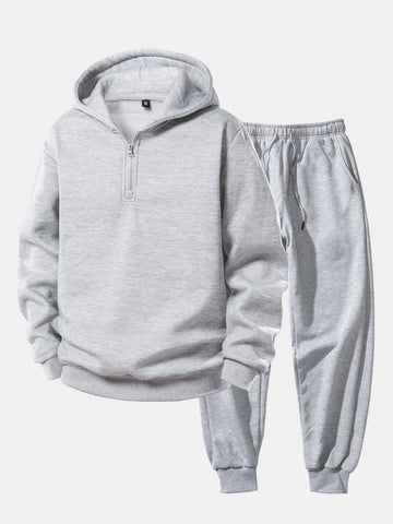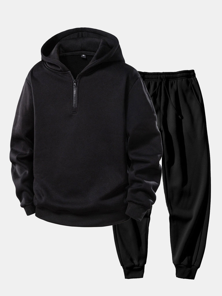 Upgrade your loungewear or streetwear rotation with this quarter zip hoodie & pants set. Featuring a cozy hoodie with a modern quarter-zip design and matching relaxed-fit pants, this set delivers effortless style and all-day comfort.