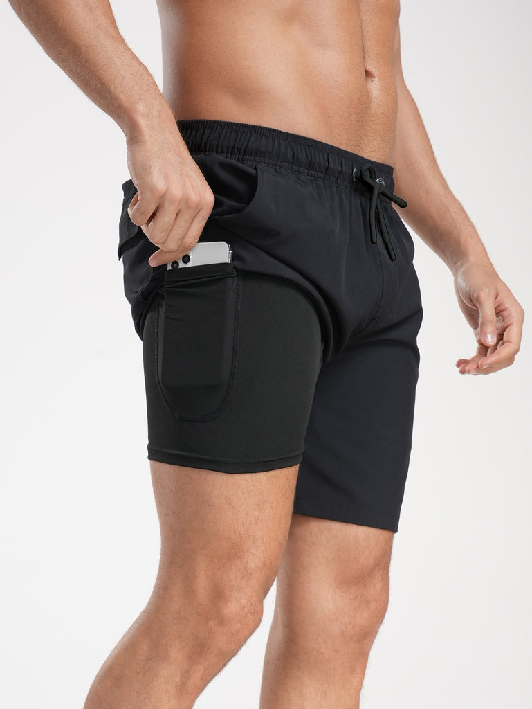2 Σε 1 Στερεά Χρώμα Σορτς Κολύμβησης με Σχοινί