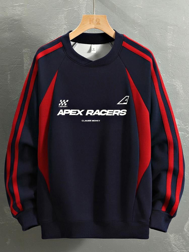Sweatshirt blok warna slogan perlumbaan yang besar